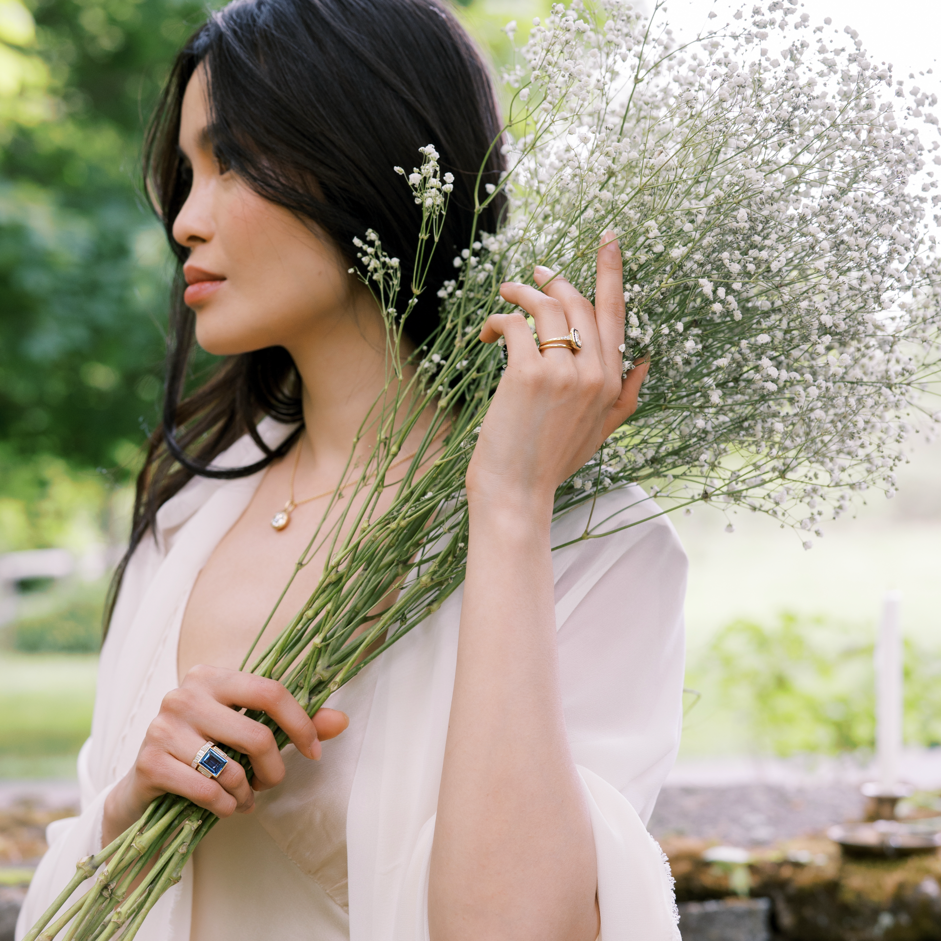 Sapphire is the September birthstone and first rose to widespread acclaim as an engagement stone in the Victorian Era. Traditionally, these stones have been desired for their iconic deep blue color. But sapphires also occur in a variety of tantalizing and romantic colors, including violet, fuchsia, orange, yellow, green and the delightfully unique color “padparadscha,” which gorgeously blends pink, tangerine and salmon hues.