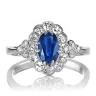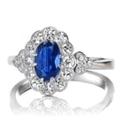 Antique Sapphire Ring with Diamond Halo in Platinum Setting