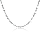 The Serenity 14.36 necklace is an AB original design. The necklace features 60 diamonds of approximately H-I color, VS-I1 clarity all combining for 14.36 carats. The stones are collet-set in Platinum with a 16-inch length.