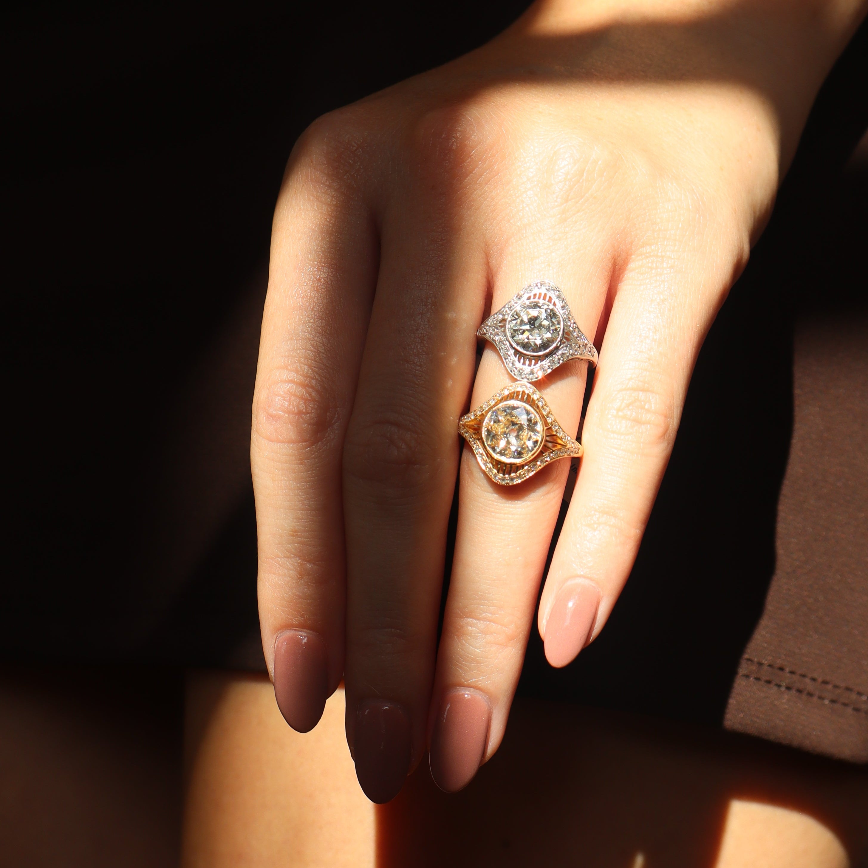 With a distinctly modern and streamlined look, bezel set diamonds are a unique take on the more traditional prong setting. Often minimalistic in design, they have a sleek and sophisticated style that has captured the hearts of women for decades. Victor Barboné’s exceptional collection of vintage bezel set diamond engagement rings offers a wide selection of endlessly captivating pieces. Find your perfect bezel set ring in the VB collection!