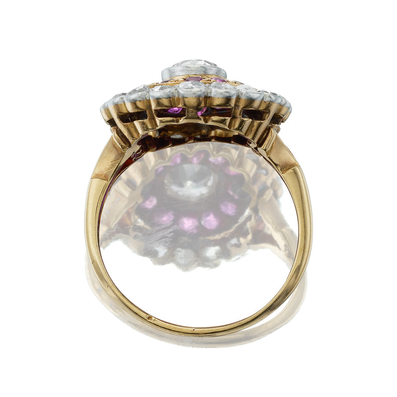 Antique Double Halo Ruby and Diamond Cluster Ring