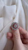 The Brenna ring is an authentic vintage diamond and ruby cluster ring from the Edwardian Era circa 1905. The ring centers an Old Mine Cut diamond of approximately 0.55-carats, J-K color, SI clarity surrounded by a halo of 12 rubies which combine for roughly 0.10-carats. Completing this glam look is an outer halo of 18 Rose Cut diamonds all totaling approximately 1.00-carats, J-K color, SI-I clarity. The stones are set in a two-tone platinum and 18kt yellow gold split shank setting. The ring is currently size 6.5 and can be resized!