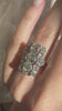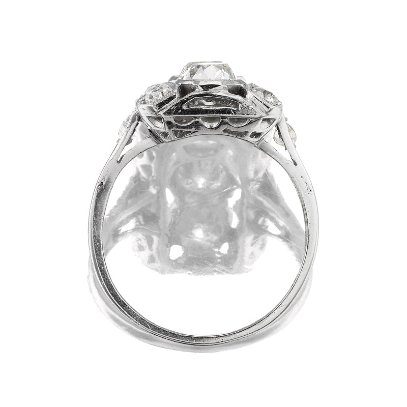 Bold geometric design, bright Platinum, fine millegrain detail, and delicious chunky diamonds combine in this Art Deco showstopper piece! We love the scale of the ring, which offers full finger coverage while remaining a sense of lightness through its use of negative space in the setting. A glittering piece that embodies the opulence of the Jazz Age, Alicia makes a statement on any finger!