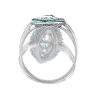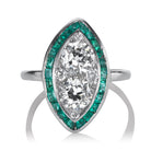 Art Deco Old European Diamond Marquise with Emerald Halo