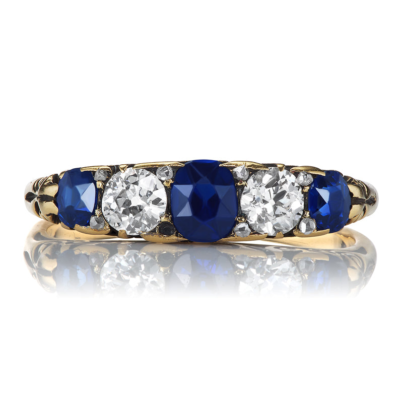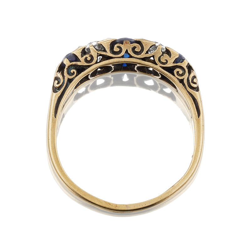Vintage Five Stone Sapphire and Diamond Yellow Gold Ring