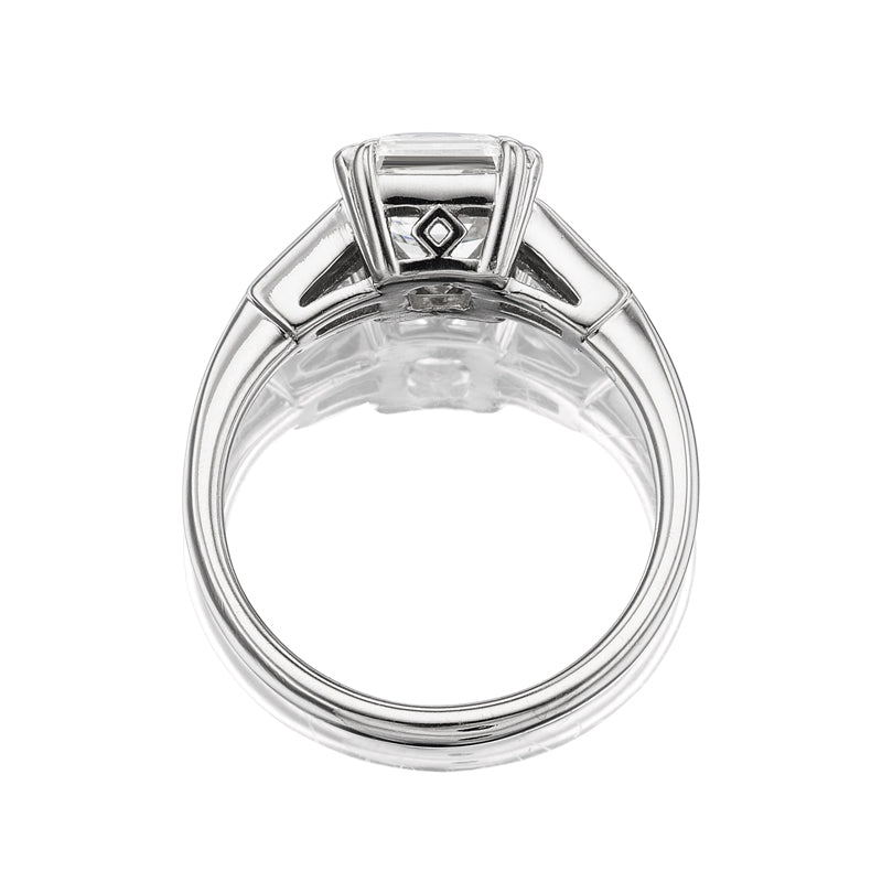 Emerald cut diamonds also have wider, more open tables—but Asschers have more facets. Asscher cut diamonds will also have a distinct X-shaped facet pattern. The culet on an emerald cut stone is more trough-shaped. Both cuts give the appearance of concentric squares, creating an intriguing and distinct hall-of-mirrors appearance!