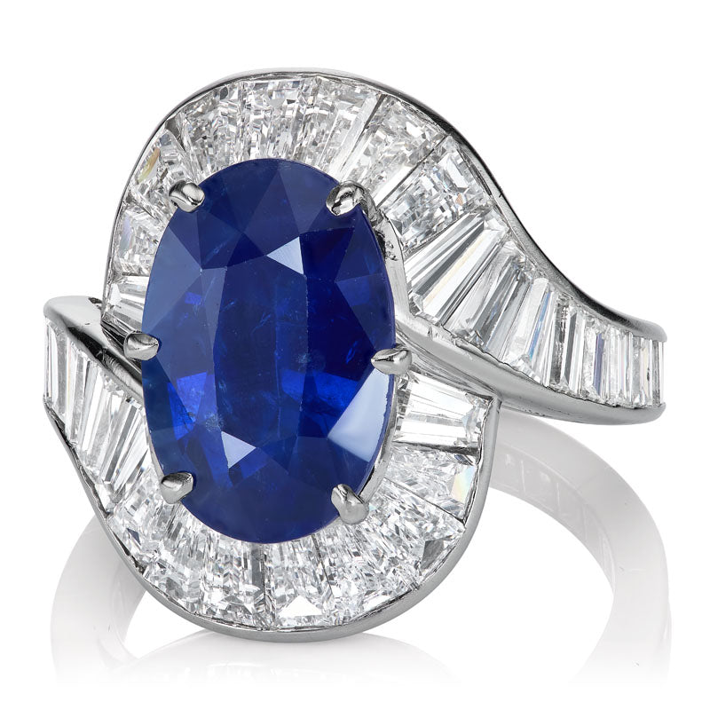 Unique 5.67ct Sapphire + Diamond Vintage Art Deco Ring