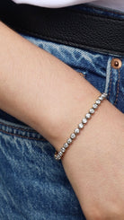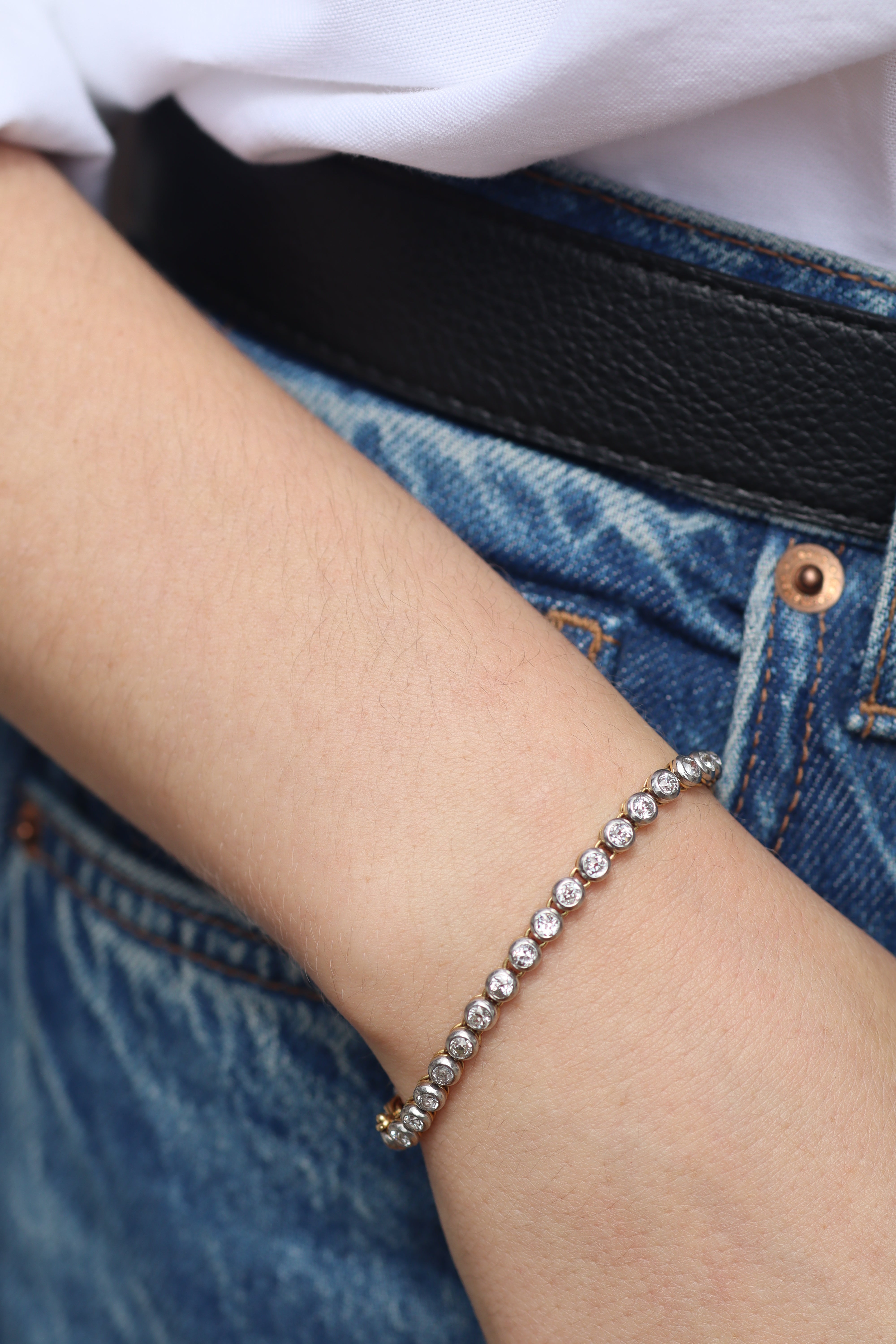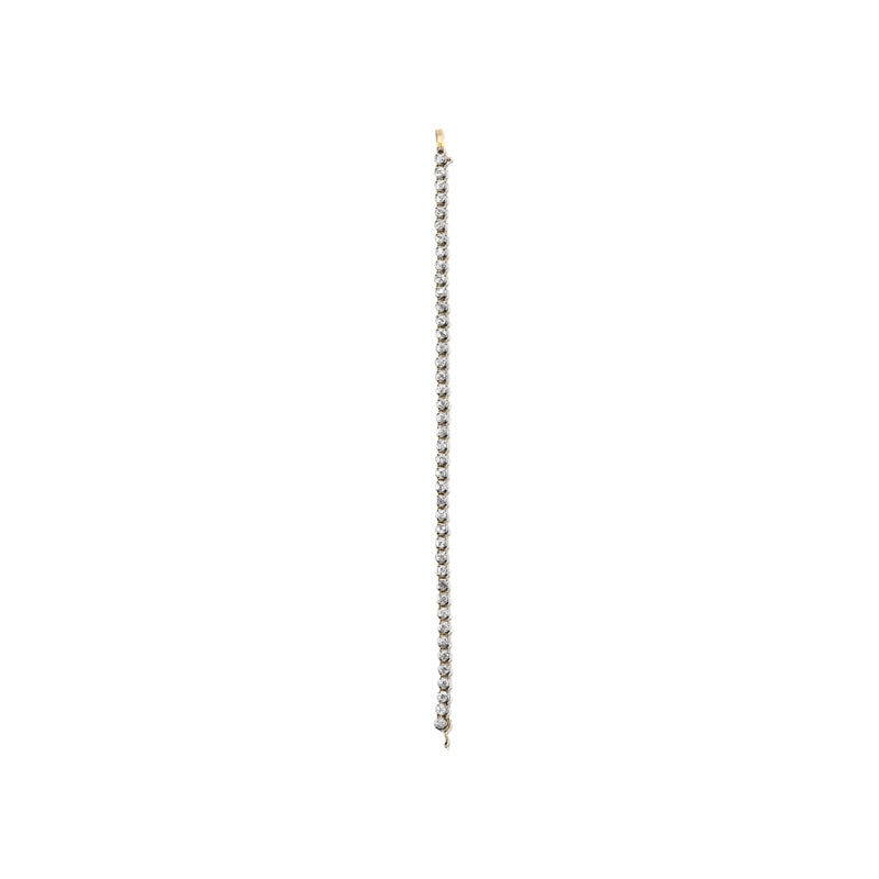 A vintage tennis bracelet in a classic silhouette! Featuring a strand of chunky, bright Old European Cut diamonds, the Brooks bracelet is a timeless staple in a two-toned setting. We love this sleek piece for layering in with other jewels.