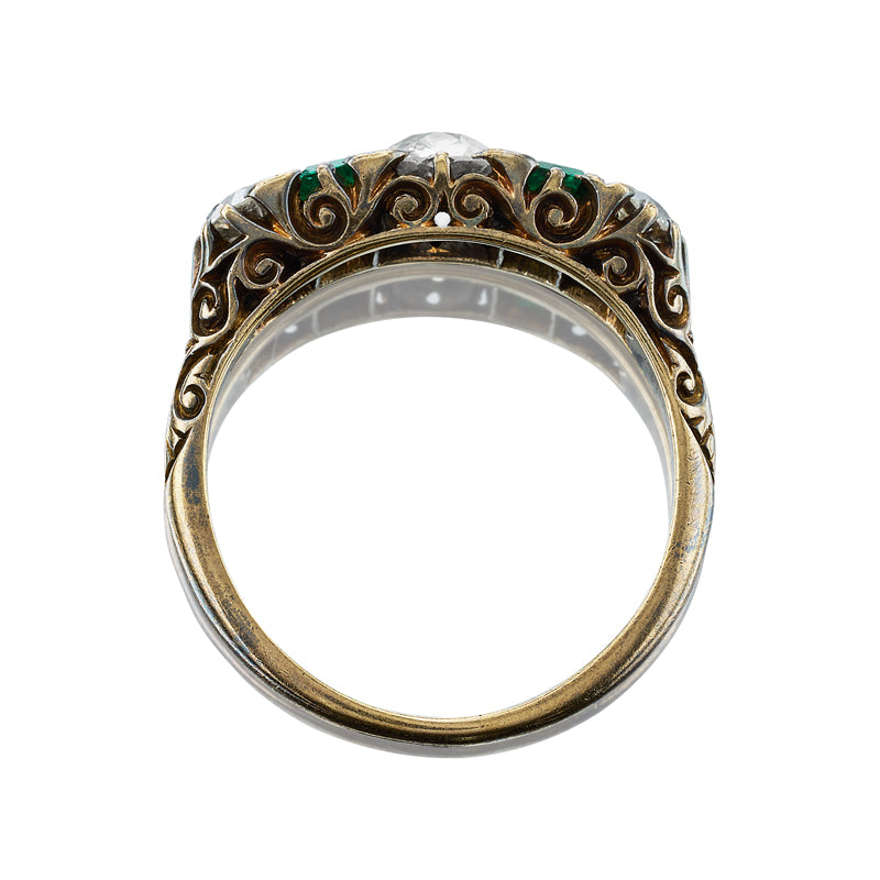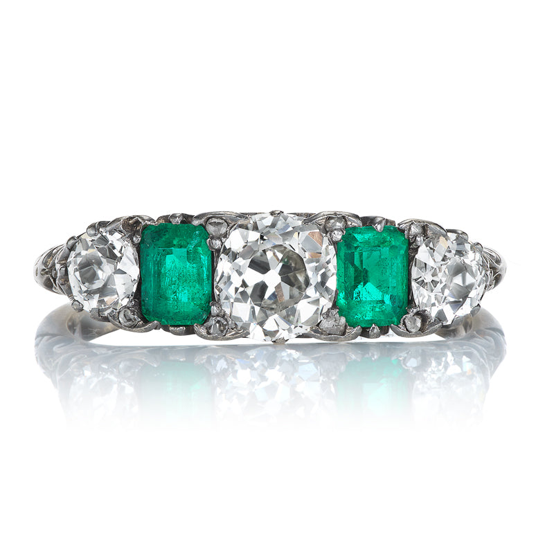 To us, there is almost nothing better than a half hoop. This gorgeous ring features alternating diamonds and emeralds complete with beautiful and intricate metalwork. She would look stunning on almost any finger stacked or solo.