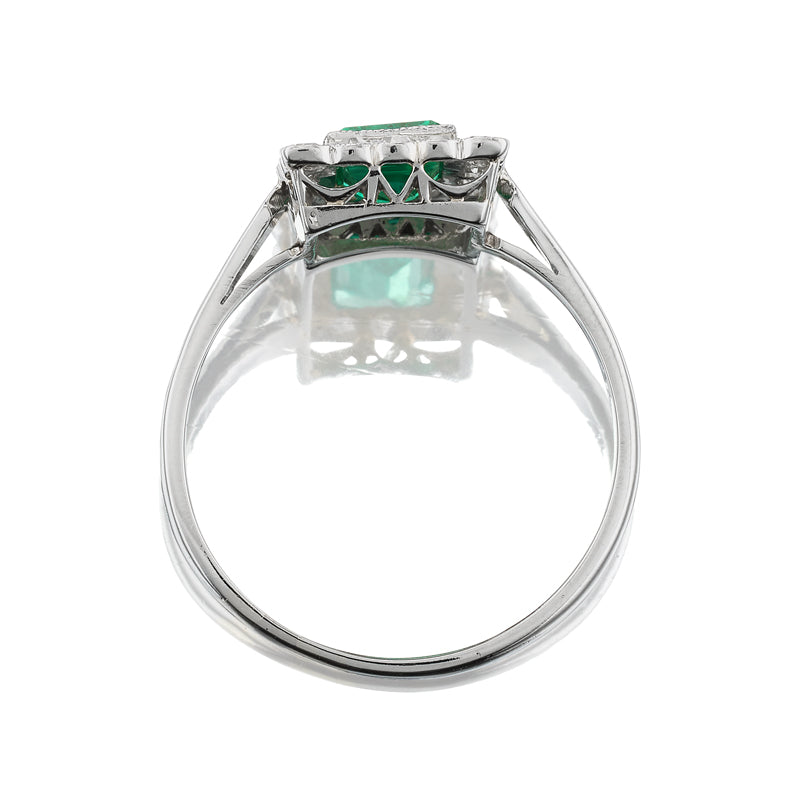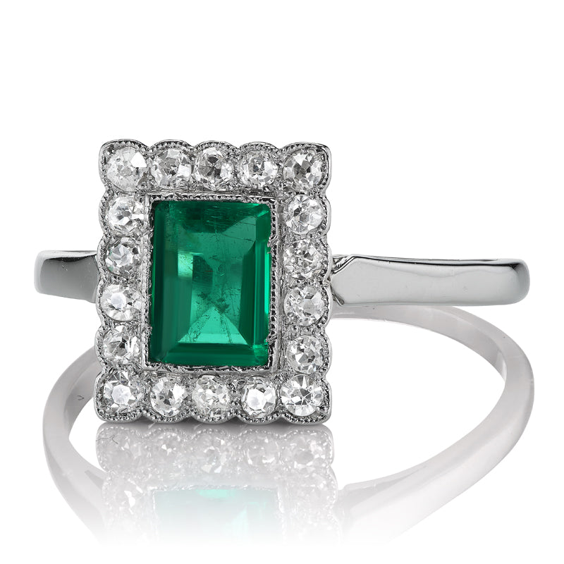 Vintage Emerald Ring with Antique Cut Diamond Halo