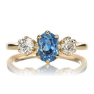 Three Stone No Heat Sri Lankan Sapphire with Old Cut Diamond Side Stones