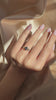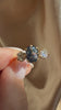 We love the range of blues in this sapphire center stone and the way it glows in the buttery yellow gold. The magical sapphire and the crisply faceted, fiery antique diamond side stones are a match made in heaven, blending beautifully to create the dream sparkle and finger span.