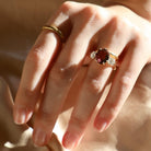 Centering a large vibrant, juicy purplish-pink tourmaline, this version of our Mallory ring is our most fun yet! Two bright Old European Cut diamonds flank the mesmerizing center stone. We adore the finger coverage and warm golden setting of this piece! Beautiful as a unique engagement ring or a ring for any special occasion.