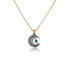 An artful rendition of a 19th-century crescent, this pendant captures the ever-changing waxing and waning of the moon's glow with its detailed setting. Intricate patinaed silver settings "moon flare" out from each antique diamond on the piece's perimeter. The central sapphire conjures images of blue velvet night skies. Wear her as a captivating, moody accessory with a story to tell.