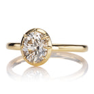 The Allie 1.22 ring is an AB original design made right here in NYC. The ring centers a GIA-certified 1.22 carat Oval Cut diamond of S-T light brown color (read: Champagne), SI2 clarity. The stone is collet-set in an 18kt Yellow Gold setting. The ring is currently size 6 and can be resized!