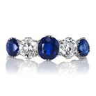 Alternating between rich blue sapphires and bright white diamonds, this playful and wonderfully dynamic piece is a a joy to behold. For those that love sapphires, this bright yet deep tone of blue is the most sought-after, and the contrasting diamonds only serve to enhance that gorgeous tone.