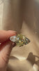 We came across these gorgeous, very rare antique side stones and waited patiently until we found the perfect center stone to bring them to life. Then this incredibly hued, highly desirable elongated Old Mine Cut diamond came to us. It created the perfect balance in size, contrast in color, and even coordination in the unique way each of these stones is faceted. Enter Celeste: a one-of-a-kind piece due to the uniqueness of each dreamy stone. To further enhance the color difference, we set the center stone with gold prongs and the side stones with platinum for even more interest. This three-stone ring offers incredible finger coverage and span in a truly unique shape thanks to the diamonds themselves!