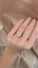 This ring nods to the romantic floral and cluster motifs of the Edwardian era. At its center sits a dreamy, bright 1.05ct pear-shaped diamond, held in crisp platinum prongs that keep the look fresh and precise. A halo of bright white diamonds quietly amplifies the center stone, while delicate, swirling engraving along the shoulders adds that unmistakable old-world finish.