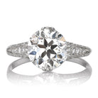 The Lucasta ring is an authentic antique diamond ring from the Edwardian Era, circa 1910. The ring centers a GIA-certified 2.83-carat Transitional Cut diamond of K color, VS2 clarity. The stone is set in a prong setting. The basket and band are lined with glittering diamonds. The stones are all set in Platinum. The ring is currently size 7.75 and can be resized!