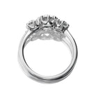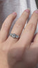 We selected three bight and glittering old mine cut diamonds to span the finger in this platinum Marielle. The diamonds glow in this low-profile three stone ring that plays so nicely with wedding bands.