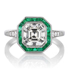 Choose from an Asscher Cut or Old Euro center stone and emeralds, rubies, or sapphires baguettes for your halo.