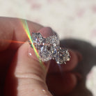 This ring centers an incredibly rare antique diamond with a Moval-like shape and very high specs. The center stone is accented beautifully by chunky, true old mine cut diamonds that provide a nice contrast in shape and great finger coverage.