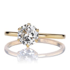 A beautifully sparkly transitional cut diamond that catches light in the prettiest way. We love the way this white diamond contrasts with its gold setting, making for a bright and eye catching solitaire that will never go out of style.
