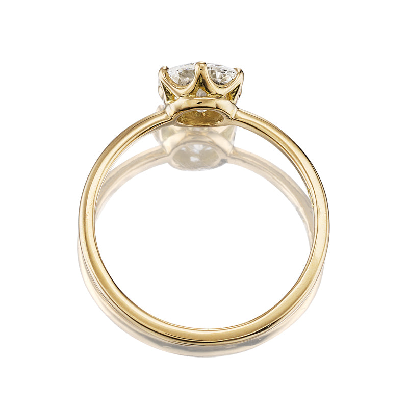 The Emmy 0.88 ring is an AB original design made right here in NYC. The ring centers a GIA-certified 0.88-carat Transitional Cut diamond of I color, I1 clarity. The stone is set our signature 18kt yellow gold. The ring is currently size 6.25 and can be resized!