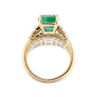 The Camille 3.33 ring is an AB original design. The ring centers a GIA-certified 3.33-carat octagonal cut Zambian emerald with moderate enhancement. To each side of the center stone are three bezel-set step-down diamond baguettes. The stones are set in an 18kt Yellow Gold setting. The ring is currently size 5.75 and can be resized!