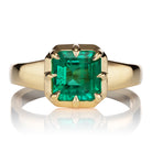 Glowing Colombian Emerald in 18kt Gold Collet Setting