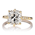 Nearly 4 Carat Cushiony Old Mine Cut Ring with Side Stones and Intricate Basket