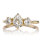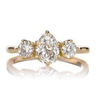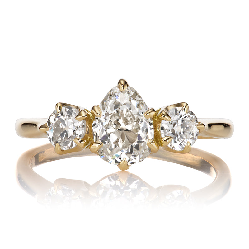 Pear Shaped Diamond with Old European Cut Side Stones in Gold Setting