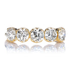 The Andria Band 1.61 is an AB original design made right here in NYC. The ring centers 5 Old European cut diamonds totaling 1.61 carats of I-J color, VS clarity. The stones are set in an 18kt Yellow Gold collet setting. The ring is currently size 6.5 and can be resized!
