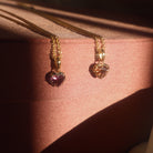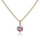 A heartfelt addition to any jewelry collection. The stone has a brigh pink hue that changes personality in different lighting. The color is complemented by our creamy, signature 18kt yellow gold in a classic Georgian-inspired collet setting- a modern take on old-world craftsmanship. This glimmering pendant feels equally ideal as a romantic gift or a personal symbol to hold close- and is perfect for everyday wear or thoughtful layering.