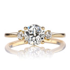 The Daffodil 1.17 ring is a VB original design made right here in NYC. The ring centers a GIA-certified 1.17-carat old European cut diamond of O-P color, VS1 clarity. The stone is set in a 4 prong 18kt yellow gold setting with an old European cut diamond set to either side, both combining for approximately 0.12-carats. The ring is currently size 5.75 and can be resized!