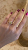 The Riley 1.21 ring is an AB original design made right here in NYC. The ring centers a GIA-certified 1.21 carat Transitional Cut diamond of Fancy Brownish Yellow color, SI1 clarity. A halo of 12 Old European Cut diamonds of H-I color, VS clarity totaling approximately 0.41 carats surround the center stone. The stones are set in an 18kt Yellow Gold and Platinum two-tone prong setting. The ring is currently size 5.75 and can be resized!