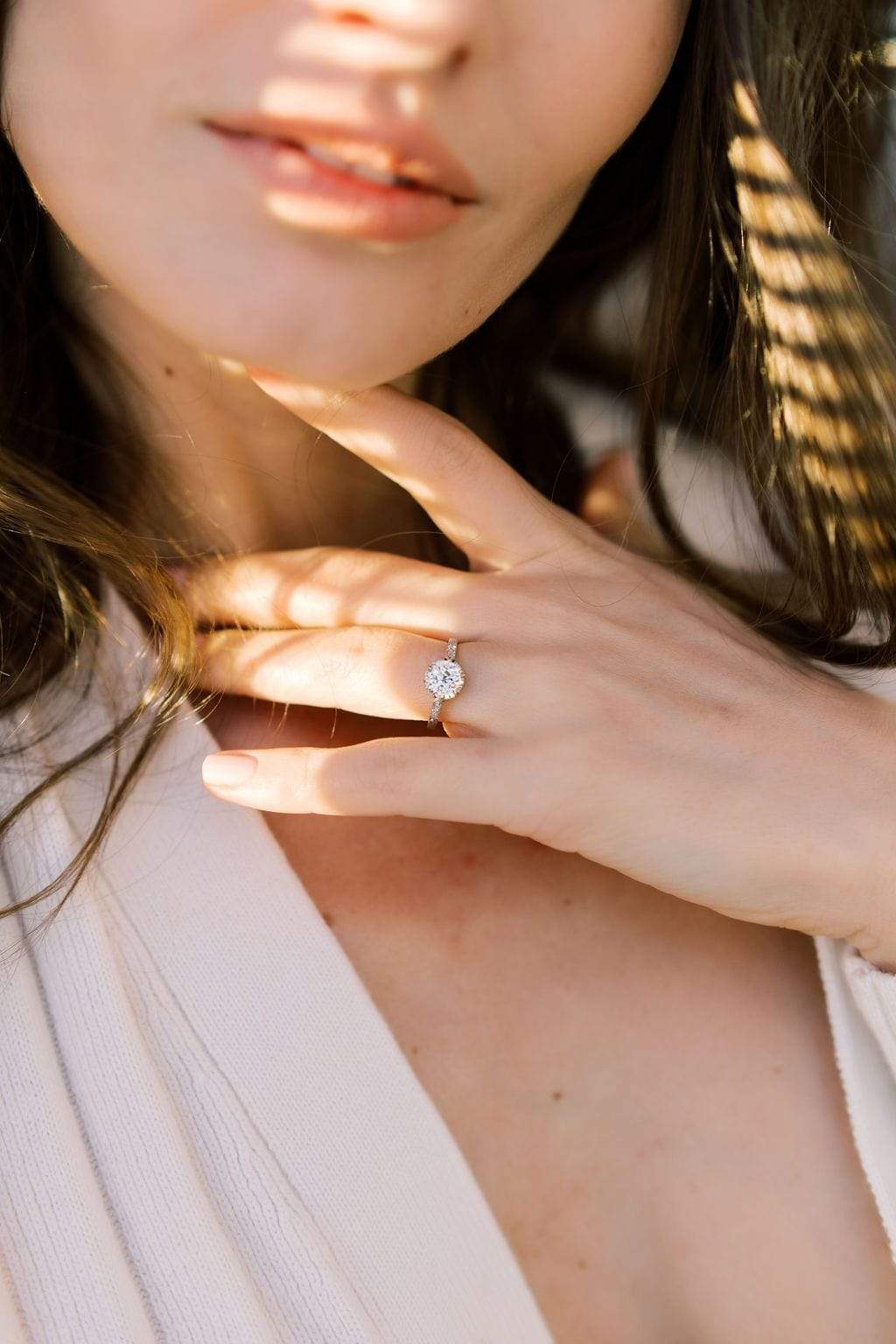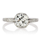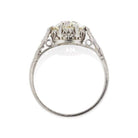 A classic vintage engagement ring with gorgeous details. The OEC in this ring is bright and beautiful and set in this beautiful platinum setting with double prongs and unique shoulders that form a prong for the ring. The ring is low-profile and ultra-wearable.