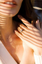 The Juno ring is an authentic vintage engagement ring from the Art Deco Era circa 1920. The ring centers a GIA certified 1.51 carat old European cut diamond of J color, SI1 clarity. The diamond is prong-set in a platinum setting with three old European cut diamonds lining the shoulders of the ring. The ring is currently size 5.5 and can be resized!
