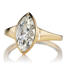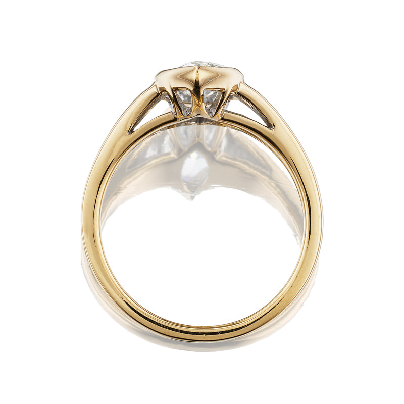 Sleek and stylish, our Marvella setting is the perfect home for a gorgeous marquise like this one. Bright, white, and perfectly proportioned, this diamond is such a find. The golden bezel-setting outlines the beautiful shape of this stone.