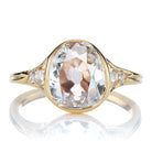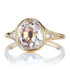 Incredibly spready with a very unique shape that we would call more of a Poval- a pear and oval hybrid. This rendition of our Rosita ring stuns looking much larger than her carat weight with dreamy, broad facets. A pink backing offers a pretty, rosy feel. Super chic in her bezel setting, this ring offers a low profile and plenty of finger coverage.