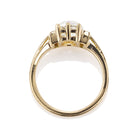 Two verticle baguettes flank this chunky and bright Old Mine cut diamond, allowing for perfect contrast between shimmer and deeper sparkle, as well as a finger-spanning look.