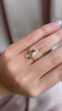 So chic and so unique. The gold adds a boldness to this low-profile stunner. The diamond has a beautiful hue and great spread to it.