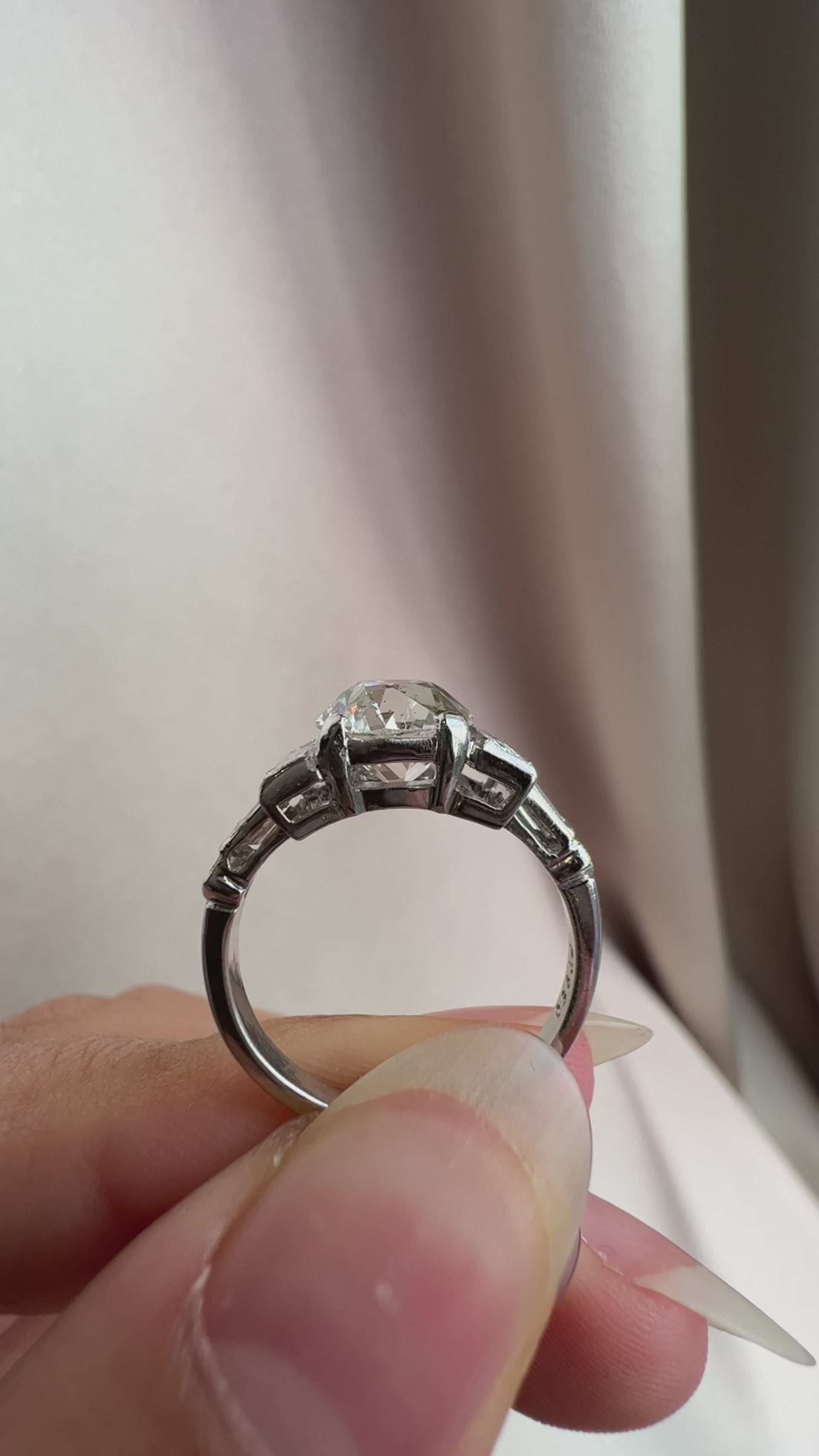 1.74ct Old Euro Diamond Ring with Baguette Side Stones