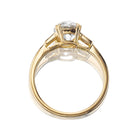 The Benedicte 1.85 ring is a VB original design made right here in NYC. The ring centers a GIA-certified 1.85-carat old mine cut diamond of I color, VS1 clarity. The stone is set in a four-double-prong 18kt yellow gold setting with a horizontal baguette to each side. The ring is currently sized slightly over a 5.75 and can be resized!