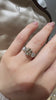 The dimensions of the center stone are 7.69 x 6.97 x 4.65 mm.