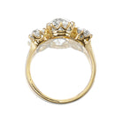 The Marielle 1.87 ring is an AB original design made right here in NYC. The ring centers a GIA-certified 1.87-carat Old Mine Cut diamond of M color, I1 clarity. On either side of the center stone is an Old European Cut diamond of approximately K-L color, VS-SI clarity, together totaling 0.94 carats. The stones are set in our signature 18kt yellow gold. The ring is currently size 6.25 and can be resized!