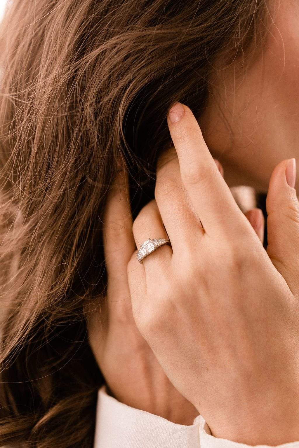 A very sleek and linear Art Deco piece! The baguettes create a nice spread to the ring giving ample finger coverage and a hall-of-mirrors theme! The detailed metalwork in the side view elevates this piece just a bit more!