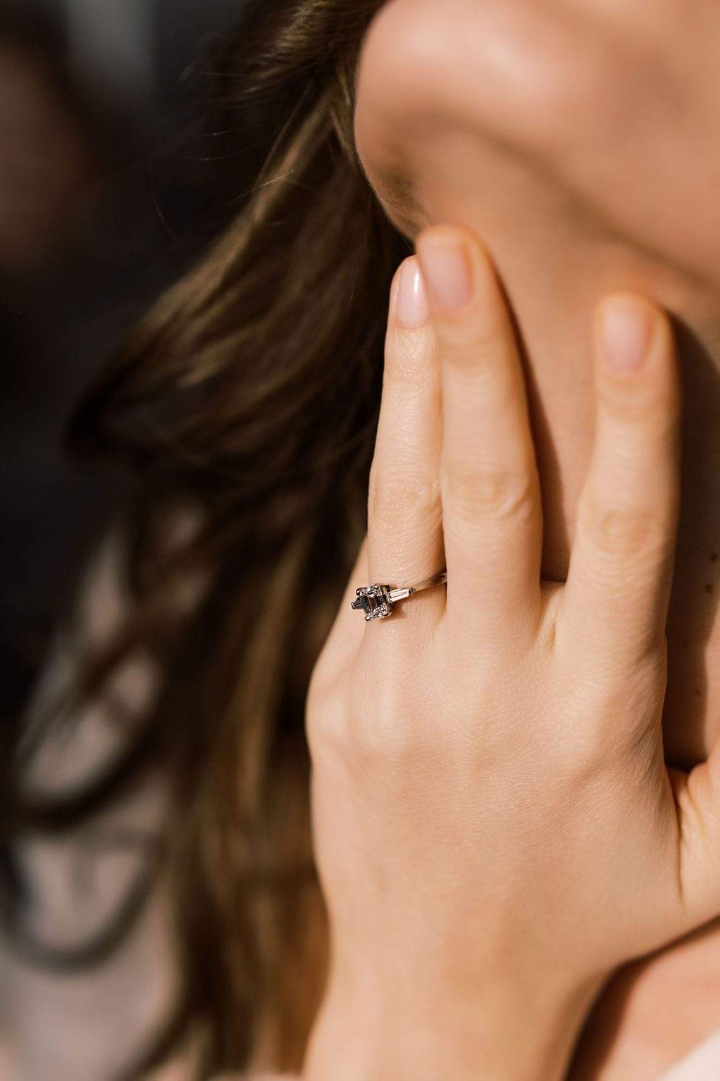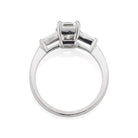 The Ingrid Ring is an authentic vintage ring. The ring centers a GIA Certified 1.03 carat Emerald cut Diamond of D color, VVS2 clarity. The diamond is set in a 4 prong platinum setting with a tapered baguette to each side, both combining for approximately 0.14 carats. The ring is size 5.5 and can be resized!