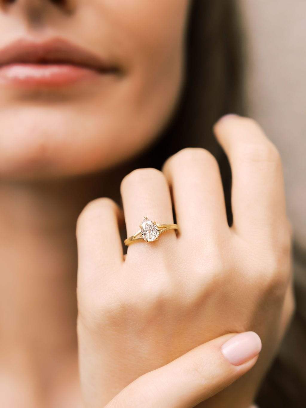 The Sierra 1.04 ring is a vintage-inspired VB-made diamond engagement ring. The ring centers a GIA certified 1.04-carat pear cut diamond of H color, VS2 clarity. The diamond is set in a 7-prong 18 karat yellow gold setting with split shoulders. The ring is currently size 6 and can be resized!