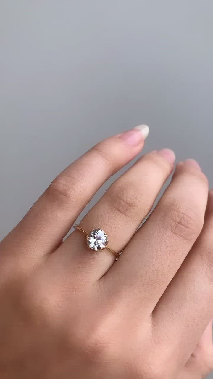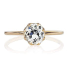 The Bella 1.07 ring is a vintage-inspired VB-made diamond engagement ring. The ring centers a GIA certified 1.07-carat old mine cut diamond of H color, VVS2 clarity. The stone is set in an 8-prong 18-karat yellow gold setting. The ring is currently size 6.25 and can be resized!